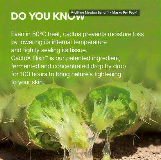A targeted jawline design combined with a cooling gel formula and patented Cactox Elixir to support natural-looking firmness and smoother-looking skin.